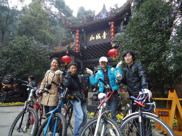前一晚上还在到处借车,各种准备都没做好第二天早上9:00发了。刚开始的时候想着离目的地那么远,心理也有点质疑,再加上各位好心人士的劝告及忠告,搞的我对大家的安全问题甚是有点紧张。上了成青快速通道,一路上走着专门修的自行车道,中途还有驿站休息,加上我们充足的干粮准备,骑得那是一个欢快。不时还有同行从我们身边骑过——装备很重要!!一路上走走停停拍拍照,从11点开始说吃饭,结果一次次都直接骑了过去,只闻着菜的香味,勾起我们无限的遐想。