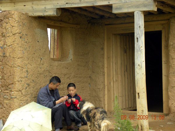 和德甘家人 闲谈了约大半小时,在此过程中,可爱的狗狗(现在已不觉得它脏了)趴在一边静静地睡着了,直到天边又飘来一大片乌云,天色即变,于是与德甘及家人告别,留下电话,说好回县城洗好照片,打电话通知他们来取。