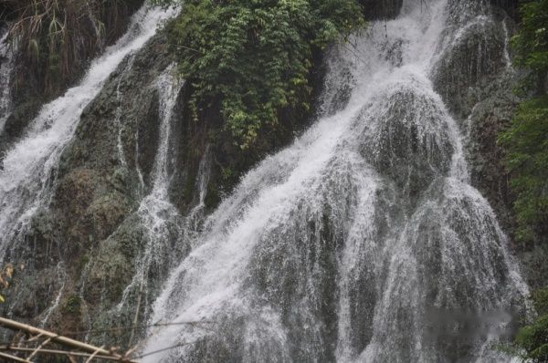 第二天一早,我们便起床了,匆匆忙忙洗漱完毕,就出发去看瀑布了。路上的景色十分美丽。山坡上全是绿茸茸的~草里夹着蒲色的~_紫色的、鹅黄色的野花。清清的水流从山坡上缓缓地流下来,撞在岩石上,叮咚作响。大自然的声音汇成了一首欢快的乐曲,在幽静的山谷里回荡。走了好一会儿,忽然,我听到了巨大的响声。又走了几步,我看到了美丽而壮观的大瀑布。瀑布从景区里最高的山上飞泻下来,被一个水槽引成了弧线型,从我的头上飞过,然后直接落入水潭中。真美啊,我不由自主地凝神观望。晚上,我恋恋不舍地离开这里,心里还在想这一天中看到的美景。
