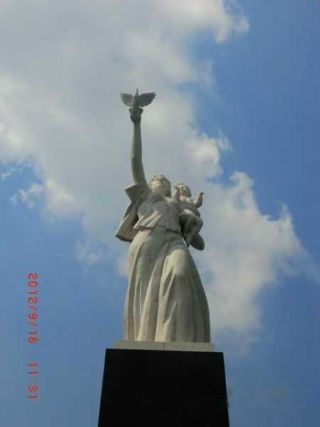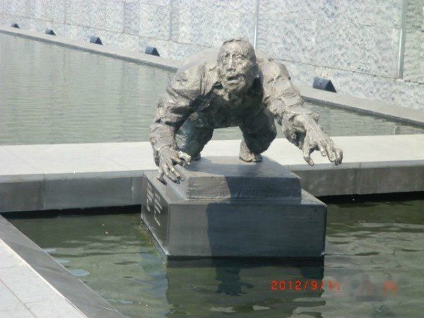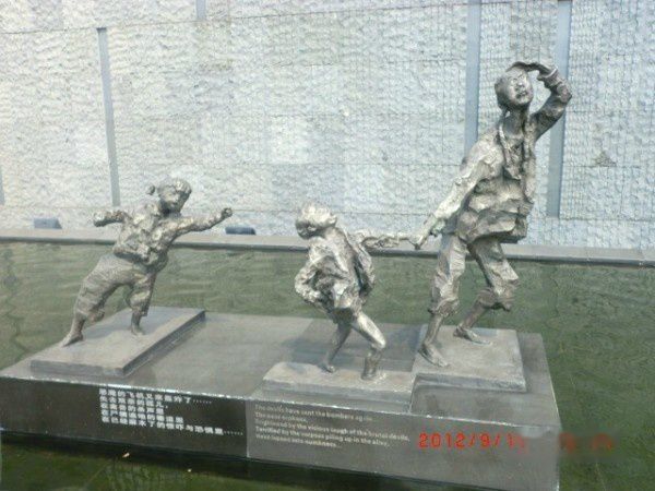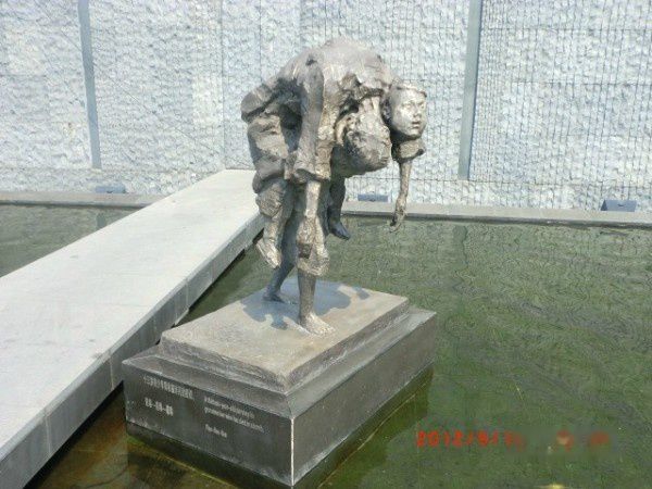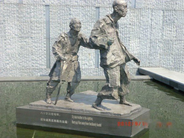 南京大屠杀纪念馆的雕塑 领着80岁老母逃离