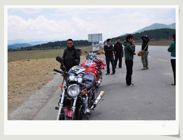 阿文等朋友倒是对路程充满了兴奋和向往,虽然没有戴头盔也毫不影响他们追求速度感的渴望和体验大排量摩托车的力量感。他们总是一路飙驰,像离弦之箭毫无顾忌的奔跑着。通向香格里拉的国道算是丽江周边修得比较爽快的道路了,畅平的柏油路嵌在漫漫草原之上,150、160码的速度对汽车都有点疯狂,但这个速度确成几个年轻人追求的快感。