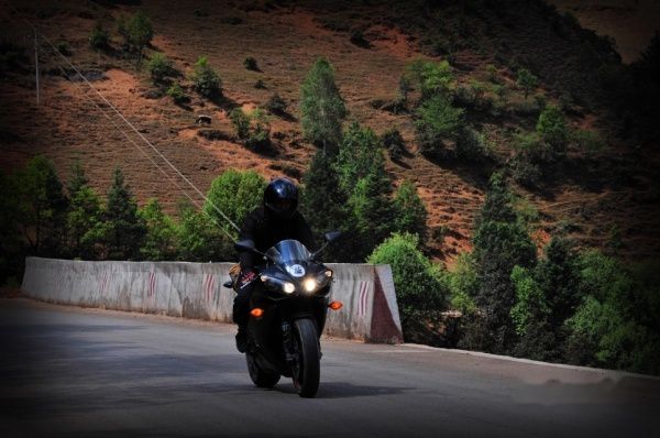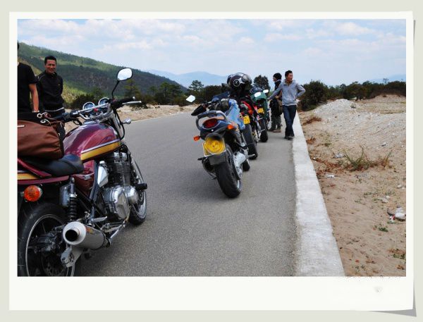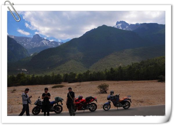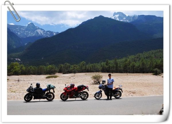 我们的出行得到了阿文等朋友的加入,会骑车的就骑车,不会的就坐车,一共7个人、5辆摩托车欣然出发。丽江到香格里拉走国道的单项路程约200公里,这次的行程设计2天1夜,没有景点、没有旅游,只有骑行,其实江山和我已没有心情去看风景,只想在曾今一起走过的地方去想念故人。线路从丽江走国道到香格里拉200公里,从白水台方向经虎跳峡返回丽江约240公里。整段线路最难走的就是从白水台至虎跳峡的路,公路依山而建七拐八绕的,上坡下坡、急弯、连续弯道,压弯到你想吐,连开车的人都要晕。中途还要穿过几个彝族村落和著名的哈巴村,唯一值得庆幸的是可以一连远眺到白马雪山、哈巴雪山的壮丽风景。