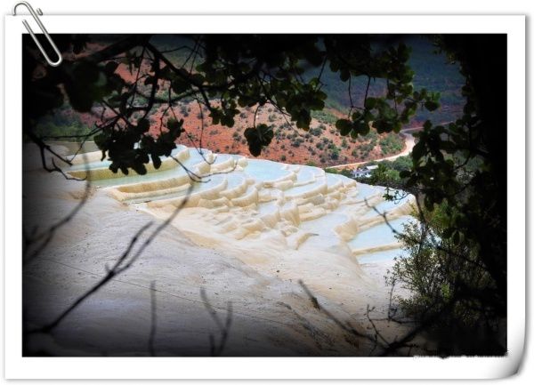 回程的路是艰辛的,但想到了却了小宋的心愿也就释然了。在僻静的山野之中骑行,除了孤独的自己,就只有树上叽叽喳喳的小鸟了。白水台是丽江东巴教的发源地,旁边的三坝村据说是“东巴”的培训基地。白水台应该是由山里带有极强钙化的雪水冲刷、堆积而成。可惜这里游客稀少,以致开发幅度小、设施老旧。几个人十几分钟就登上了台顶,鸟瞰四方,确无神奇,只有俯首洗面沾沾神圣之水以自得其乐喽。