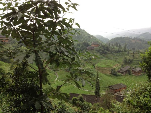 到达大寨,已经是下午四点多了,真不知道被困在路上的中巴游客怎么办,潘掌柜已经在景区口等我们了,他带着我们开始爬山,有大寨的老妪要帮我们背行李,40块钱左右,但是我们包比较轻,所以没有找他们。一路烟雨蒙蒙中梯田的景色也别有一番味道。