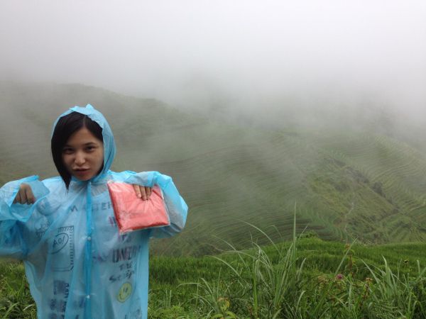 D3: 5:00 起床,到达一号景点西山韶乐,等待日出,可惜这一天是没有日出,等了半天什么都没有,但是烟雾蒙蒙的梯田,别有一番美景。山顶雨大起来,我们迫于无奈在山顶买了两件天价一次性雨衣,不过这雨衣在后面的漓江水仗中发挥大作用了。