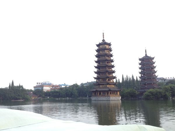 到达桂林火车站,入住提前在悠游网订好的花满楼青年旅社,直接坐11路公交车到解放桥下,步行至解放桥码头,提前预定了船票,报上小张的电话,拿到了船票。4:50坐上一江四湖的船,开始桂林游,将桂林城徽象山、独秀峰、伏波山都看了一圈,桂林桥多,充满各种风情的桥是一大看点。在城徽象山边,船上有个专业摄影师会占了最好的位置帮你拍照,事后免费给你一张2寸照,放大的照片20元卖给你,桂林很多景点都是这样,这应该也是他们的圈钱方式吧。桂林基本没什么看头,一江四湖就可以包括所有了,标志性的都能看到。到了晚上是著名的两江四湖夜景,个人对LED的景色没什么特别好感,而且价格太高,所以选择了早上的活动。到日月湾下船,湖边转转,我们就迫不及待赶去最近的中山中路上的中山酒店的椿记烧鹅大快朵颐,回宾馆路上感受步行街以及买了点广西的水果,谁让我爱吃山竹呢。不过对广西卖水果的态度还是要鄙视,态度很差,感觉像欠了他们钱,价格谈不拢就破口大骂,无语啊