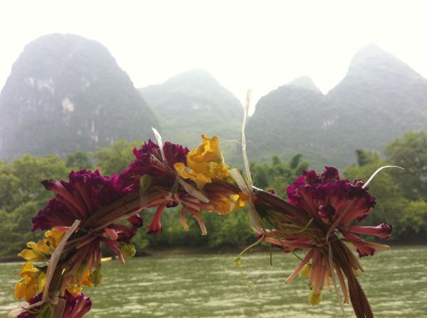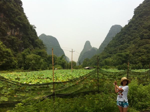 到达阳朔,其实乍一下车并没与特别惊艳的地方,感觉就是一个隐藏在青山绿水中的小镇。因为我们旅馆没有定在西街附近还需要走大概15分钟左右,我们开始问路,也就是因为问路我对阳朔人民留下了很差的印象,街头只要不是光顾的,统统都说不知道在哪里,(其实旅馆很好找,就在遇龙河方向),问摩的师傅就往反方向指,出租车开口价20,不打表。后来迫于无奈我们上了摩的,就是和我们说不知道路的师傅,结果顺利到达。阳朔….再美的风景都毁在了人心上。想当时我去香港,问路一个连普通话都不会说的奶奶,直接领我们走到旅馆,真是天壤之别。所以我对香港的印象非常好,很快融入到里面,而我到阳朔知道第三天才真正感受到他的美。一个地方山水再美,若让人觉得疏离,终究是遗憾。我们的旅馆虽然位置稍远但是非常干净,崭新。对得起网上评价说相当如家的环境级别,没个房间有一辆免费自行车用,在阳朔非常受用