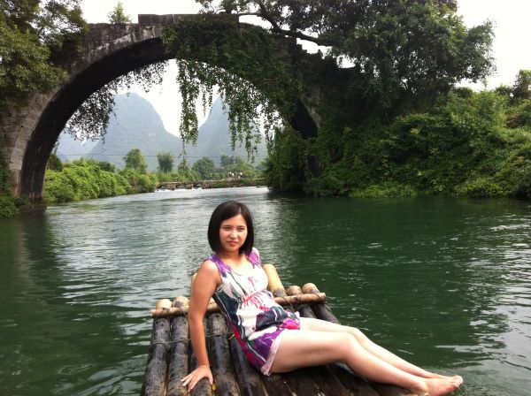 9:00—12:00 遇龙河漂流,找了名筏封师傅,个人更喜欢遇龙河漂流,第一真正的人工竹筏更传统更有感觉,第二遇龙河两边的风景完全不亚于漓江边,甚至有过之。层层叠叠的青山,躺在竹筏中睡睡觉,看看山,听封师傅唱山歌,讲故事,是享受啊!唯一让我觉得郁闷是到第五个滩(很多滩都有拍照,第五个滩最高)我们想上去拿照片,但是因为我POSE没摆好,下滩的时候太紧张闭眼睛了,所以不好看,我就说这个我闭了眼睛拍的不好看,就不要照片了但是我又挺遗憾的,和我老公说,哎可惜我不上照不好看,郁闷啊。结果旁边那个拍照师傅恶狠狠地说了句;“不要买就算了,别说我照片拍的不好”一时间好心情都没有了。