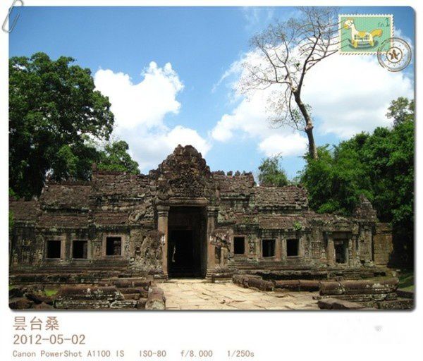 Preah Khan圣剑寺,说是12世纪时,阔耶跋摩七世为供奉自己的父亲而修建的。谁是阔耶跋摩七世?别问我,我也不知道,这点资料也是刚刚搜索出来的,就连圣剑寺的名字,也得感谢百度。闲逛的时候,我就给这座寺庙起了个名字:镜寺。