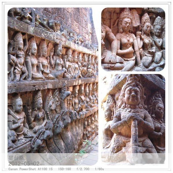 昨天小圈逛吴哥王城时很赶时间,战象平台(Terrace of Elephant)、癞王平台(Terrace of the Leper King)都只是匆匆路过。今天天色尚早,正好再去溜达一圈。果然,发现了好看的浮雕,因为在夹道中,大部分都还比较完整。