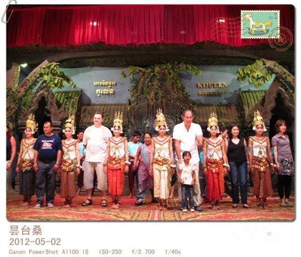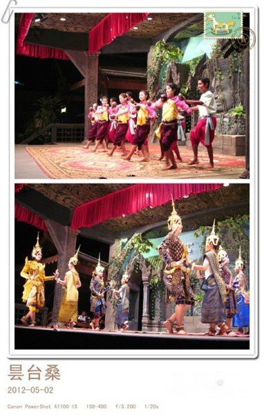 节目以舞蹈为主,身着华服的女子们一招一式舞姿优美,但为啥跟泰国舞蹈那么像呢?衣服感觉也没两样。另外还有表现普通人生活和男女恋爱的平民舞蹈,发现其中一个小姑娘挺像Aff,果然演艺娱乐界美女众多,柬埔寨也不例外。
