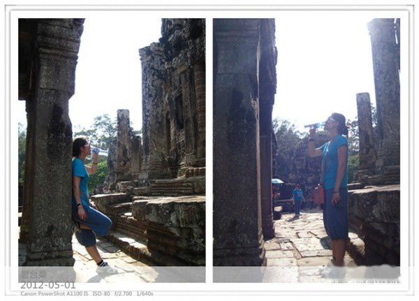 看不懂小吴哥,只能拍拍拍,找各种自认为美好的角度。拿着单反状似摄影家的人待在哪里取景,我一定会蹭蹭蹭到他旁边,原地也来一张。