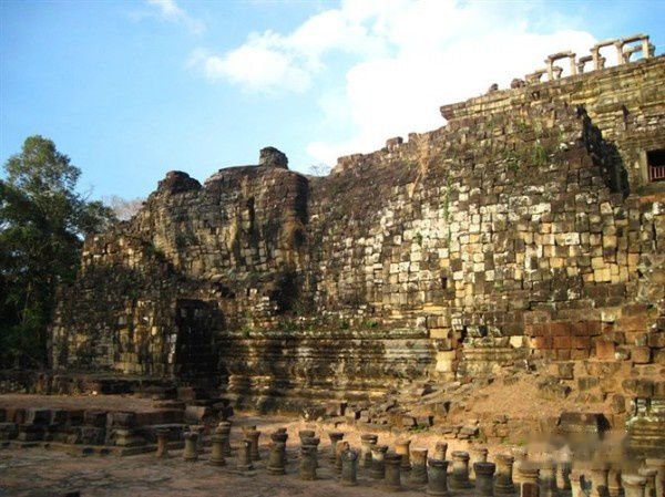 周萨神庙(Chau Say Thevoda)并不大,但相信它能给所有人留下深刻印象,因为修复实在粗糙,崭新的水泥面让这古迹显得不伦不类。专门跑到牌子那看看是哪个国家的杰作,居然是中国……因为茶胶寺而自豪的心情down到谷底了……