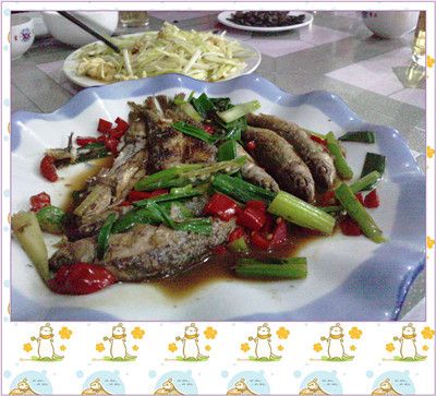 溪水中独有一种叫红岩鱼的,只不过已经禁止捕捞,你早上去捞鱼,晚上就进监狱了,鉴于这种情况,还是只好放弃尝鲜 的冲动了,不过会有黑市上贩卖,你也可以通过导游或者当地的餐馆吃到这种鱼,每斤大概88元吧,具体也不清楚。小鱼很多,晚上我们就在大排档上吃到九曲的小溪鱼哦,每盘大概在30左右,老板娘不肯便宜,无奈丸子硬是让她多送2条,确实鲜美,毫无泥土腥味。上图看看吧