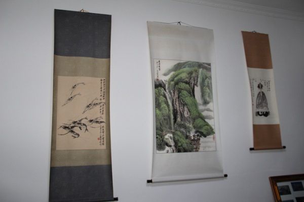 店家老爷爷每天都会练毛笔字 客厅很有书卷气息
