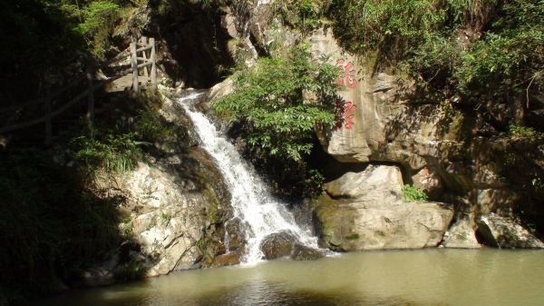 由停车场上山35分钟左右能到达龙潭瀑布,不过见到这个瀑布多少会有些失望,太小了。