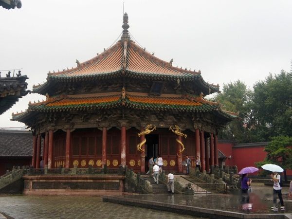崇政殿,俗称金銮殿,1636年后金改国号为“清”的大典就是在此举行。努尔哈赤1616年建立政权时,国号“金“,历史学家为避免与宋朝时的金国混淆,称之为”后金“。努尔哈赤的儿子、清太宗皇太极1636年在盛京称帝,才改国号为“清”。有人戏说,国号改得好。“明”属火,“清“属水,”水“当然克”火“啦!难怪改国号为”清”以后,8年时间就入主中原,定都北京了。