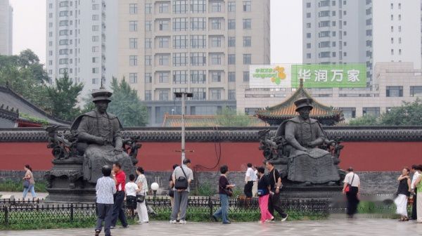 在锡伯家庙附近,有2004年新建的清十二帝铜像。