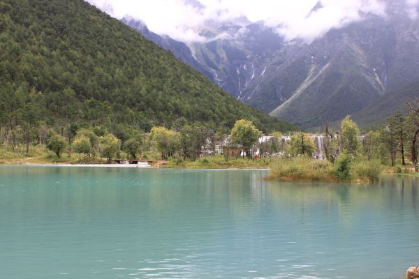 今天要去玉龙雪山,我们和传奇户外旅行社签的一日游合同,690元/人,不足一米二的小孩100元,丽江有很多接待散客的旅行社,不过良莠不齐,传奇旅行社感觉挺正规,费用不算便宜,但我们签的这个团没有购物、是小团最多不超过19人,实际上今天去玉龙雪山同行只有7人,加一个司机兼领队,服务也挺到位,整个行程下来包括我们去香格里拉也是和传奇签的合同,感觉还是物有所值的。坐上一辆面包车,向玉龙雪山出发,今天玉龙雪山被云雾笼罩,不见真面目,到达山脚下,穿上租来的羽绒服,带上氧气瓶,羽绒服和氧气瓶费用都包含在团费了,我们坐的是大索道,直接来到4506米的观景平台,今天不巧,这里也整个被雨雾笼罩,刚照了几张相就下起了雨,待了半个小时坐索道下山。在4506米地观景平台,多数人会有高原反应,只是症状轻重不同,我们三个人,孩子反应是最轻的,好像没事似得,孩子妈感觉呼吸有点困难,头有点胀,不过一直吸着氧气没有大问题,我自我感觉身体还不错,只是偶尔吸两口,不过坐索道下山时,感觉头晕,还好时间不长,到达停车场时症状消失。看印象丽江大型实景演出,张艺谋导演,演员都是当地人,感觉还是很不错的。吃过午饭,乘车前往蓝月谷,因为富含矿物质,因此水呈蓝色,有小九寨沟之称,远处可见玉龙雪山,让人心旷神怡,在蓝月谷可选择徒步和坐电瓶车,电瓶车40元/人(自费)。游览结束坐车返回,把我们送到早上接我们的地方。晚饭到石锅鱼吃了三文鱼,88元/斤,一鱼三吃,打9折后共220元。