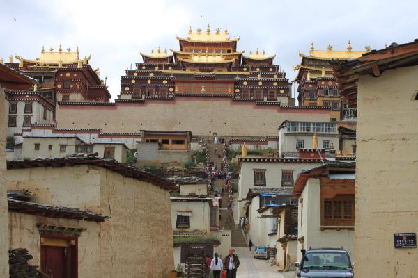今天将出发前往香格里拉,我们签的是传奇的香格里拉二日游,760元/人,小孩300元。同行共17个游客,加一个司机和一个导游,团费不包含餐费,住准四星宾馆。在路边一家店吃过午饭,就出发前往虎跳峡,我们去的是上虎跳,需要登几百级台阶。金沙江在这里急速变窄,江中有巨石突起,使得江水翻腾,震耳欲聋,蔚为壮观。下午到达香格里拉,去看了世界上最大的转经筒,5点多去松赞林寺,松赞林寺有小布达拉宫之称,依山势而建,建筑高大宏伟。