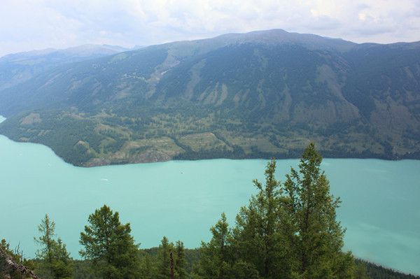 高处俯瞰喀纳斯湖的景色,喀纳斯河本是奔流喧哗而至的,但走进了这个宽阔的湖面后变成平静而温柔。就象一块碧色的美玉,镶在群山之中,当我远看它的时候,却徒生寂寞的感觉。它太平静了,即使底下暗涌流动,表面却一平如镜,是否不屑与他人交流,千百年来都只是自己静静地呆在一边,感受着时光变换,岁月流金?什么才是你的本质呢?是跌宕起伏,或是静谧温和?呆了一下,不禁一笑,我想得太多了!俗人一个!!