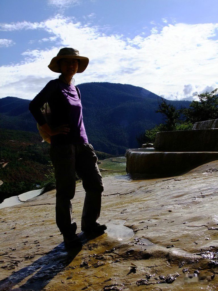 钙化池看上去很滑,其实摩擦力比平地还要大,秀一下迪卡侬装备:帽子,T恤,背包,长裤,登山鞋,防水透气的登山鞋一脚踩到水池里也完全没问题