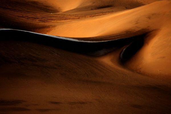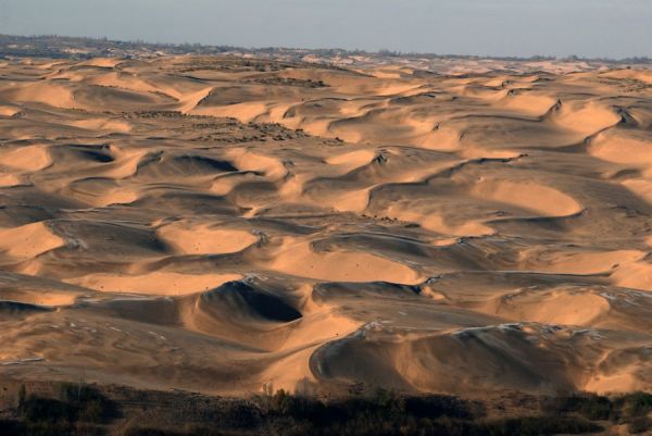 车轮挂着晨风向沙漠疾驰,本以为这里最多就是一小片水洼,谁知车身怒吼着翻过最后一个沙丘时,美景顿时让我们惊呆了:映入眼帘的是浩瀚的水面,兰灰色的远方天海沙连成一线,我们原本是来赏水的,当置身在这浩淼的水世界时却瞬间不知所措。水面迎着慢慢扩展的橙色朝晖云蒸霞蔚,并散发着水草的清香。蒹葭苍苍的芦苇坚挺在水面的浅滩中,携着阵阵习风频频向我们招手;雪白轻柔的的芦花伴着微风在水面上尽情地飘舞;脚贴水面翩翩起舞的是尖喙鹈鹕,头浸水中摇摆不停的是贪吃的鸬鹚。还有各种叫不出名的水鸟一边自由地滑翔,一边忘情地歌唱,好像是在自豪地告诉我们这里是它们的天堂。水边净无他人,只有我们轻轻地摆弄着怀里的相机,生怕惊扰了这幅动人的画面。