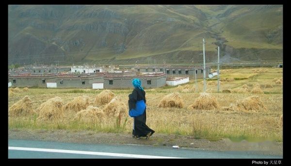 我们买了中午一点半去当雄的车票,但是这个车慢悠悠的在拉萨附近走走停停,因为车上的座位还没坐满,我们光焦急也没有,司机要拉客呢。还是静下心来等待吧,你看车上没一个人要求司机快点开车,这叫入乡随俗。下午三点的时候汽车终于认真开起来了,但是估计到当雄都天黑了,而我们还得转车去纳木错。事以至此,忍忍吧,而且这样也挺有民族特色的,乘客们除了我俩外都是当地人,车上一直放着当地的民谣,男音雄厚女音嘹亮,给人很热情很纯洁的感觉,时而又飘荡着佛堂的诵音,增添虔诚而神秘的气氛,这也算另一种经历另一种享受吧。