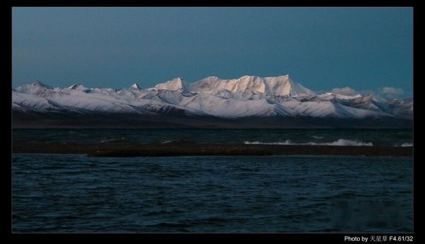 第二天我们六点多就爬起来,由于时区关系,也就四点多钟吧,外面黑漆漆的一片,绝对的伸手不见五指,天上的星星还是不多,但是我看到了猎户座。我们把能穿的都穿上,用围巾把头抱起来,只露出眼睛,然后跑向纳木错。我们选择了湖的东面,大概走了半个小时,然后停下来等待日照金山。这里海拨四千多米,到处被雪山包围,真的很寒冷,风也很大,我感觉手指脚趾都快麻木了,于是我们就在原地跳。又过了半个小时左右,似乎终于迎来了黎明的曙光,随即拍下了这念青唐古拉山的雄姿