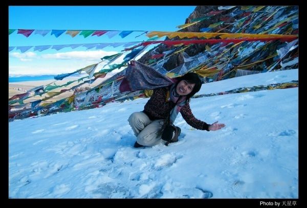 大概半个小时后,雨似乎是小了点,窗外变得白茫茫的,原来真的是下雪结冰了,小伙子开车都是呈S形前进的,的确很危险。但是,有时候我们明知道很危险也要去闯,我们总是侥幸自己就是那极少数幸运的人,哎,其实这种思想不好,我们不仅要对自己负责,还要对家人负责的。还好,一路上都很顺利,穿越在白雪皑皑的念青唐古拉山,心想着就快能去到纳木错了,那碧蓝碧蓝的湖水啊,我梦想了多少回?