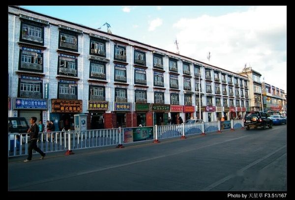 这就是拉萨的北京路啦,应该是被统一建成了这个样子,否则会更有特色,他们的每一个阳台都种满的鲜花,天竺葵居多