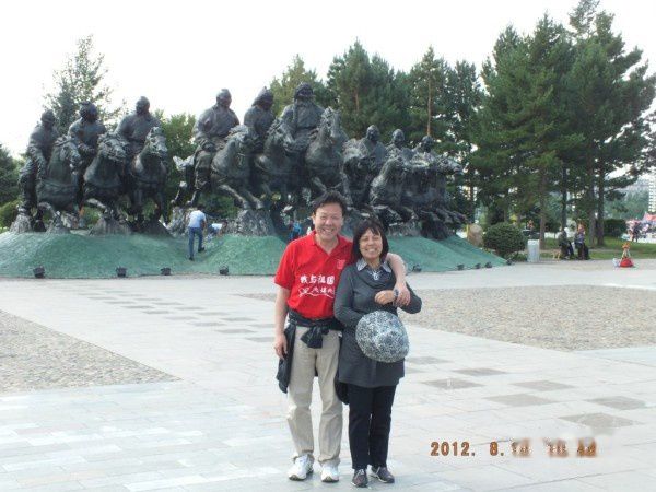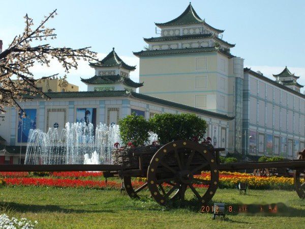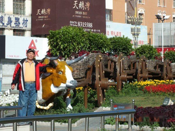 街心花园牛拉勒勒车的造型拍照,一百附近的自由市场买了下午坐火车上的晚饭:肠子19.70元烧饼4元黄瓜1.4元西红柿5.9酸奶5.6苹果6.11鸡蛋8元10个,在友谊商厦超市还买了烤羊腿带回家的,这的羊肉太好吃了。但是真空密闭不好三天后到家一看都臭了,整个扔了。提醒驴友不要买这类东东了。