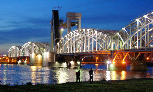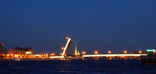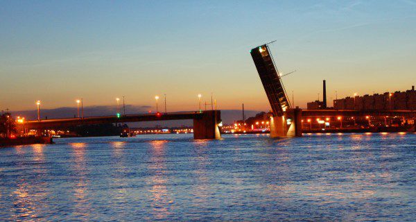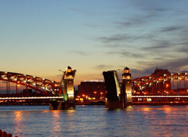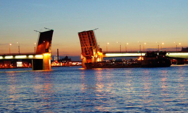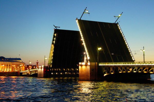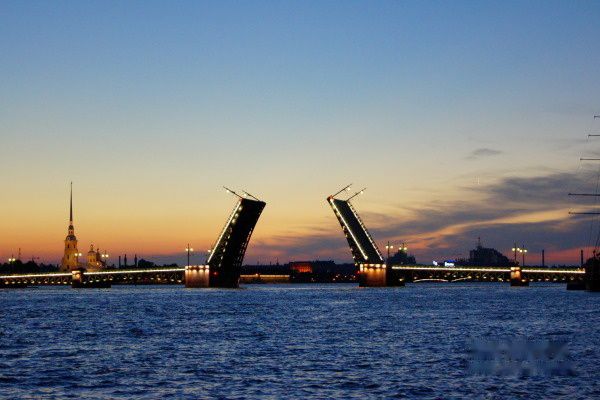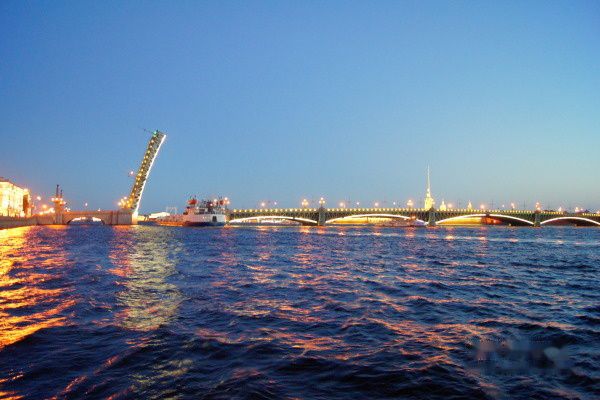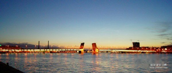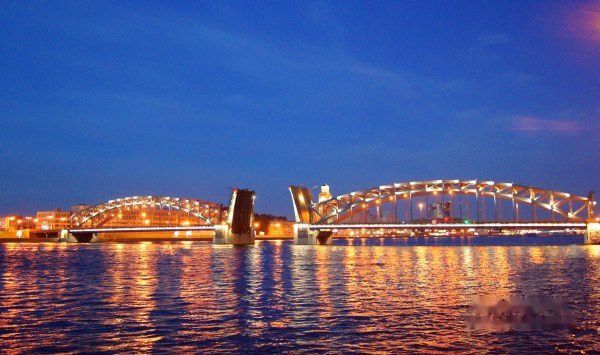 亚历山大涅夫斯基桥。这座桥于1965落成,是圣彼得堡最长的桥有9.6米长。桥中央像两扇翅膀一样打开。