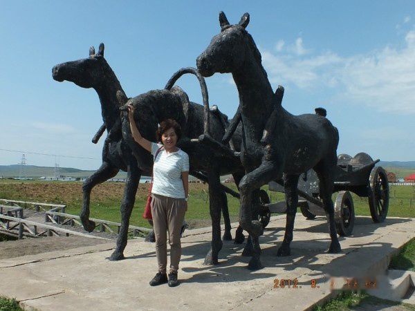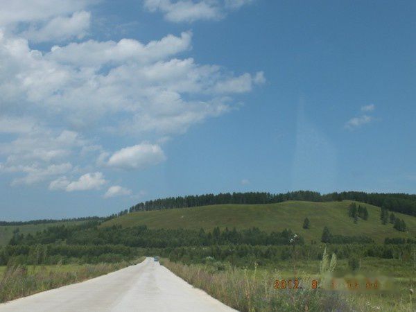 路边的白桦林在阳光的照耀下散着银光,在山风的吹佛下摇着不太健壮的腰(都是小树),摇出参差不齐的舞步全当做对我们一行人的欢迎了。今天的心情无比的愉快,看着乌黑的柏油路在向天边延伸,树木和草原交替着掠过,远山的蓝天上飘着白云,真像人在画中游一般太美了!!!