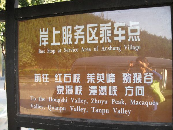 昨天的潭瀑峡泉瀑峡和猕猴谷消耗了很多能量,现在腿开始有些酸疼。早起在宾馆吃完早饭,背上矿泉水7点20多就到了岸上服务区的乘车点。