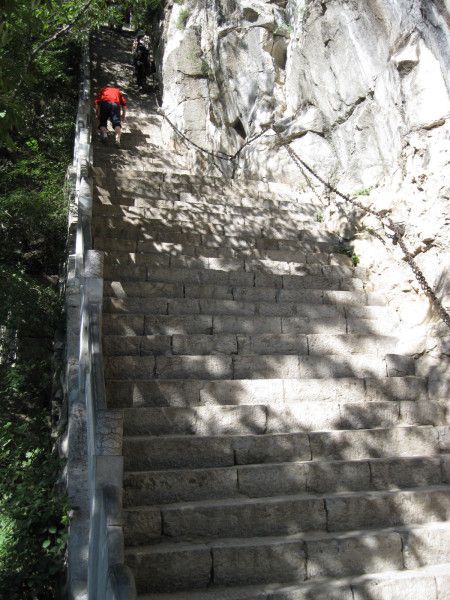 茱萸峰的名气大的很呢,唐代大诗人王维曾登临此峰写下“独在异乡为异客,每逢佳节倍思亲。遥知兄弟登高处,遍插茱萸少一人”的千古名句。好家伙茱萸峰海拔1308米,如果有银子的可以选择坐滑杆上的,穷游得我们就只能靠自己慢慢的爬了。。还好楼梯不是太陡峭,是不是得还穿插些平缓的林间小路,累了就坐下来好生感受下天然大氧吧。30分钟后来到了900米的孙思邈药王洞,可惜现在就只剩一个香坛,里面并没有什么可看的。