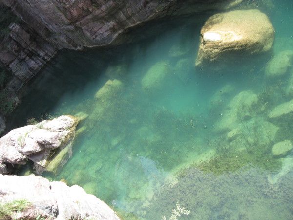 走进了,有些像个小拱桥的样子,不过两人并排走的话最好是侧下身,9月份不是旺季人不是很多,据说10月份的时候都是要等很久才能过得去的。有很多人坐在岸上泡脚。。。。