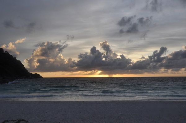 坐在海滩旁看日落,没有巴东的太阳红,但也别有一番味道。