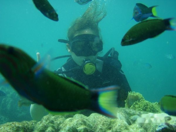 下午是去蛋岛深潜,有了上午浮浅的惨痛经历,真想放弃深潜,不过教练说不要紧,他会全程陪同,我们只要掌握呼吸,慢慢享受就好了。果然在教练的指导下,没有觉得不舒服,看到了美妙的海底世界。
