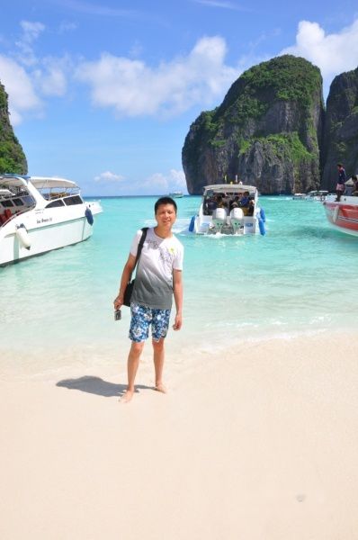 第一个景点是玛雅湾,是游人最多的景点,碧海白沙的确很漂亮,可惜只能呆半小时,只能拍拍照片以做留念了。