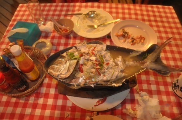 晚饭还是在悬崖餐厅解决的,点了一条柠檬汁鱼,没想到上来是那么大一条,完全吃不下。