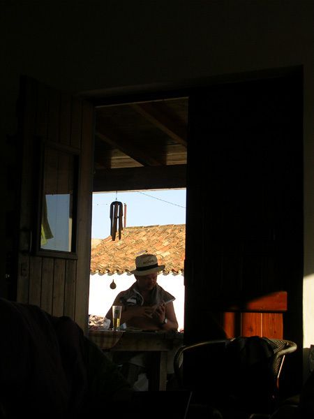 要说下午哪里最凉快吗。。。嗯,当然还是屋里。这不,Ari即使光着膀子,喝着冰啤,还是要借光到大厅看书。当地的房子挑高很高,屋内阴凉,光线适中,通风舒适。加上木制家具的低调奢华,谁不愿意往屋里跑。我的最爱就是客厅的皮沙发,可以横躺在那里睡觉。呵呵。。。自在呀!