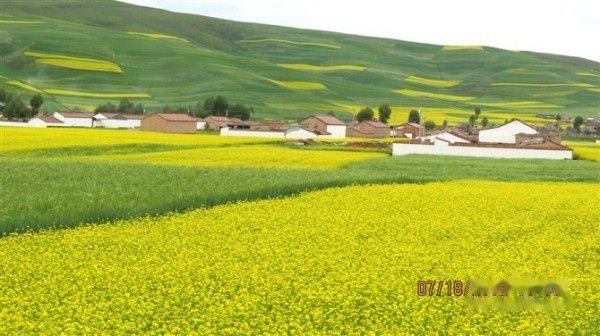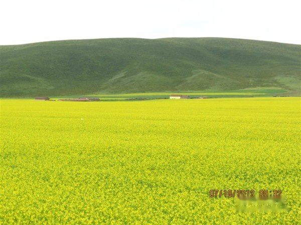 17日乘坐兰州到西宁的T207双层火车,2个多小时到达西宁,幸好网友小鱼先到西宁,由他购买西宁到门源的车票,直接去看油菜花。翻过达坂山后就是青石嘴镇,按我原计划先去门源住宿,第二天再租自行车返回青石嘴看油菜花。可满眼的油菜花让我们不得不调整计划,不去门源县成了。正好是花期,青石嘴的住宿那是相当的贵了,最后我们四人只好一间房(210元),好在每个床都比较宽大,连个人不算挤。第二天一早一直下小雨,我们包车到岗什卡雪山路口,本打算看看雪山,可惜雾蒙蒙啥都看不到,就决定冒雨徒步22公里,走回青石嘴,路边的油菜花让**连忘返。