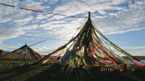 第二天一早小雨,但没有依然按照徒步计划前行,从黑马河徒步14.3公里,到达青海湖边的旦切大叔家,准备在湖边看青海湖日出。虽然穿着冲锋衣裤,但内衣都湿了,鞋也湿了,大约12点半到达目的地。傍晚依然阴天,但好在雨停了。虽然天空昏暗,但依然能感受到青海湖的广博与浩瀚。