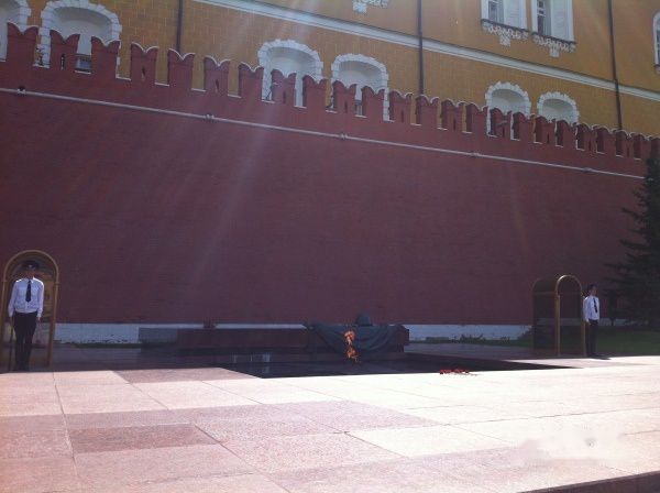无名英雄烈士墓:于1967年为纪念在第二次卫国战争中牺牲的无名烈士们而建造。没想到无名英雄烈士墓是那么窄小的一块红色花岗岩,士兵中间的火焰一直在燃烧,象征着生生不息的民族精神,为了那麽多英勇的战士,这里每一个小时都会有一次换岗仪式,世界各地的参观者络绎不绝,而士兵基本是纹丝不动, 相当的庄严和帅气,一看就是军纪严明, 很有俄罗斯男人的风骨。
