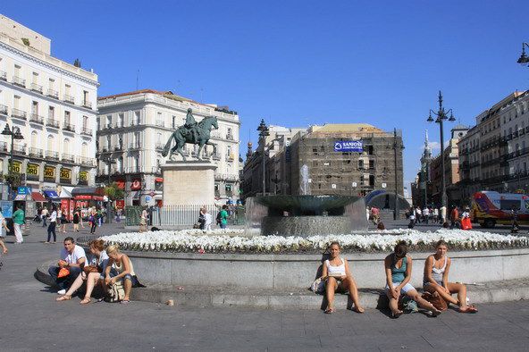 太阳门广场是马德里市民政治活动中心和商业中心,马德里人爱喝咖啡,光咖啡馆就有7000 多家,朋友或者熟人遇到一起,以在咖啡馆聊天为乐事。太阳门广场还是孩子们游玩的场所,所以永远人声鼎沸。