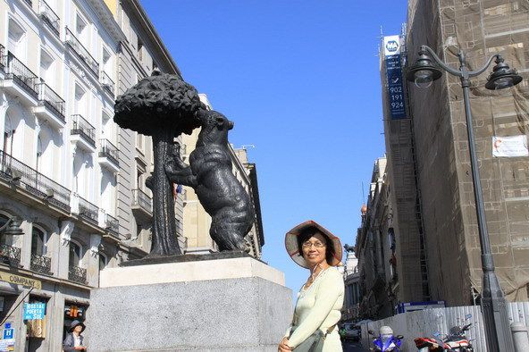 这个广场中央有一座花坛,坛内树立着一座攀依在莓树上的棕熊的青铜塑像,它是马德里的城徽。