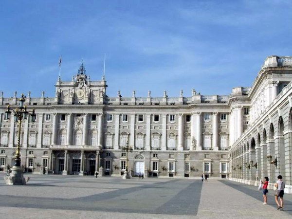 马德里皇宫(Palacio Real de Madrid)又名东方宫,是欧洲仅次于凡尔赛宫及维也纳皇宫的第三大皇宫。皇宫位于曼萨莱斯河左岸的山岗上,是世界上保存最完整而且最精美的宫殿之一。它建于十八世纪中叶卡洛斯三世,是波尔梦王朝代表性的文化遗迹,其豪华壮丽程度,在欧洲各国皇宫中堪称数一数二。内墙上的刺绣壁画及天花板的绘画都经常维修,保存情况相当好。外观具有卢浮宫的建筑美,内部装潢则是意大利风格,富丽堂皇。宫内藏有无数的金银器皿和绘画、瓷器、皮货、壁毯、乐器及其它皇室用品。内墙上的刺绣壁画及天花板的绘画都经常维修,保存情况相当好。现在,该皇宫已被辟为博物院,供游人参观。(摘自网络)