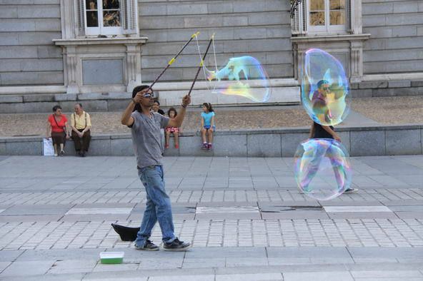 王宫外面是个广场,广场上有一些这样挣钱的人:这是我看到的最大的肥皂泡