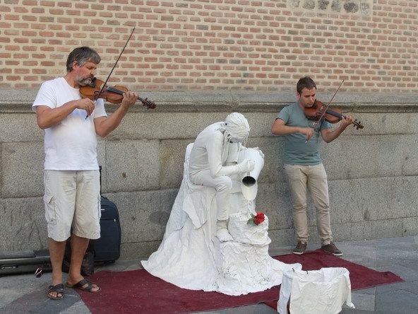 9月27号。上午11:20离开托莱多,上高速时又走岔了路,在城边饶了一圈重新上路,才顺利进入马德里。当时算了算时间,觉得可以抢出一天时间去里斯本,于是先去火车站问询去里斯本的车次和票价,得知往返车费每人要95欧(卧铺134欧)觉得贵,便放弃了。接着到市中心找停车位和旅店。先把车停在一条小胡同里,留下两个人看车,两个人出去找旅店。最后找了一间80欧的4人间(两张大床),加上一天的停车费共95欧。安排妥当已是下午4:00。